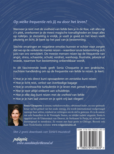Sonia Choquette is auteur, verhalenverteller, vibrational healer, en een spiritueel zesde-zintuigleraar. Ze woont met haar gezin in Chicago. Omdat zij haar kennis en ervaringen graag met andere wil delen, en jou wil helpen om in contact te komen met je intuïtie, je gidsen en je Hogere Ik, schreef zij vele boeken en andere producten, waarvan er een aantal bestsellers zijn geworden in Amerika. Sonia is opgeleid aan de Universiteit van Denver, de Sorbonne in Parijs en ze heeft een doctorsgraad in metafysica van het American Institute of Holistic Theology.