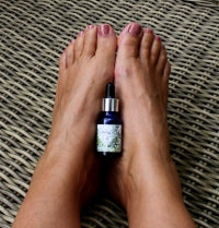 Gebruiksaanwijzing: breng met de vingertoppen een paar druppels aan op je schone voeten. Masseer rustig in. Laat even intrekken. Eventueel na een paar minuten nogmaals even masseren.