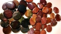 Ik ben verkrijgbaar in twee varianten: een rode (die er eigenlijk meer oranje/bruin uit ziet) en een groene (met rode stippen of vlekken). In mijn rode variant werk ik beter op het gebied van aarden, stabiliteit, veiligheid en levensenergie. In de groene variant verbind ik hart en aarde, versterk ik je vrouwelijke kant (ook voor mannen) en help ik om je vibratie te verhogen. Beide varianten doen alles wat ik hierboven doorgaf. Het is mooi om tijdens een meditatie de rode variant op je basis- of miltchakra te leggen, en de groene variant op je hart.