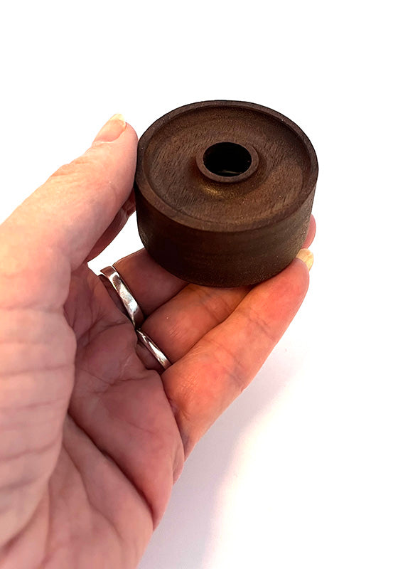 Walnoten, handgemaakte standaard (diameter 5cm, hoogte 2cm), op maat gemaakt voor onze chimekaarsen (diameter 13mm)