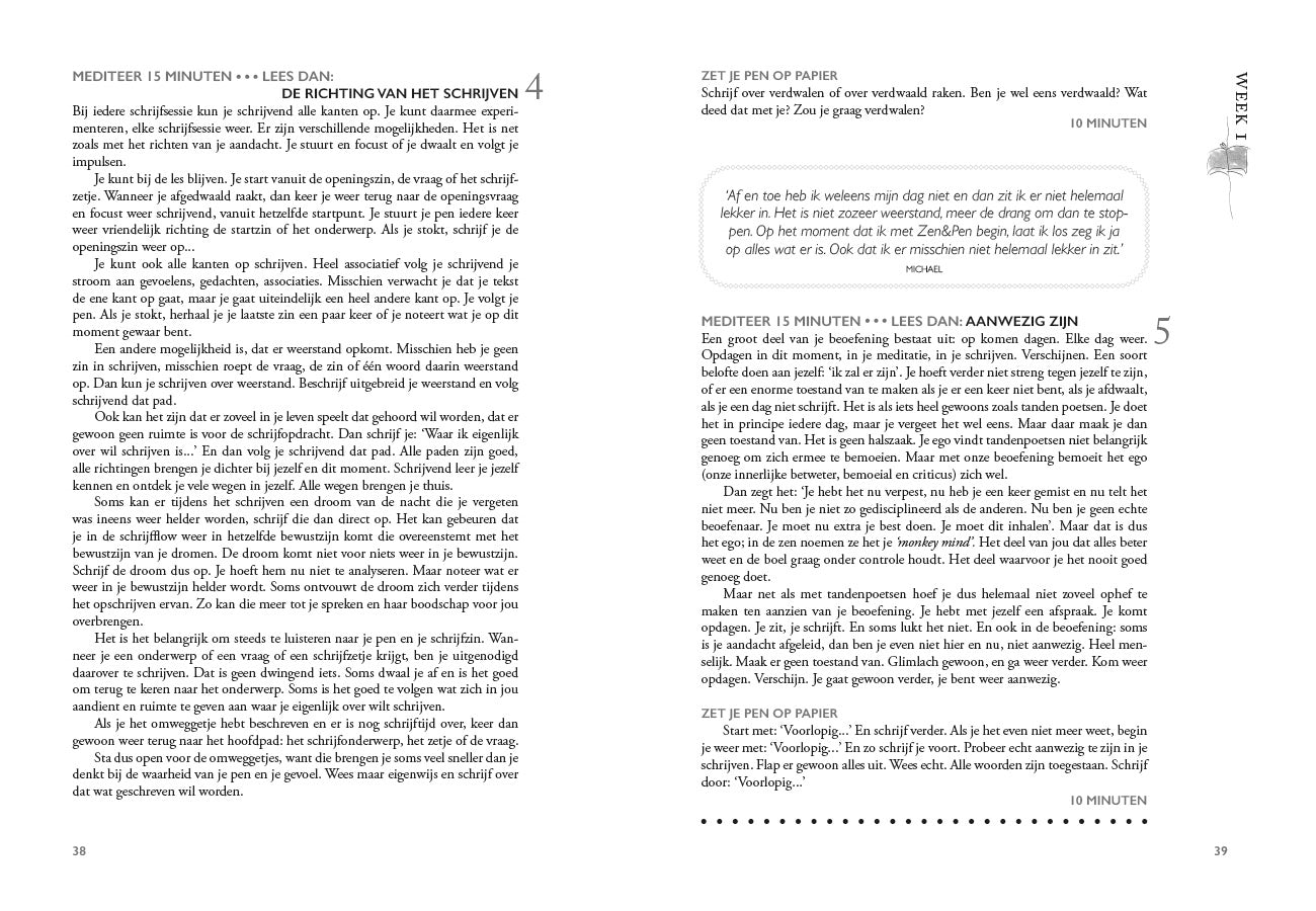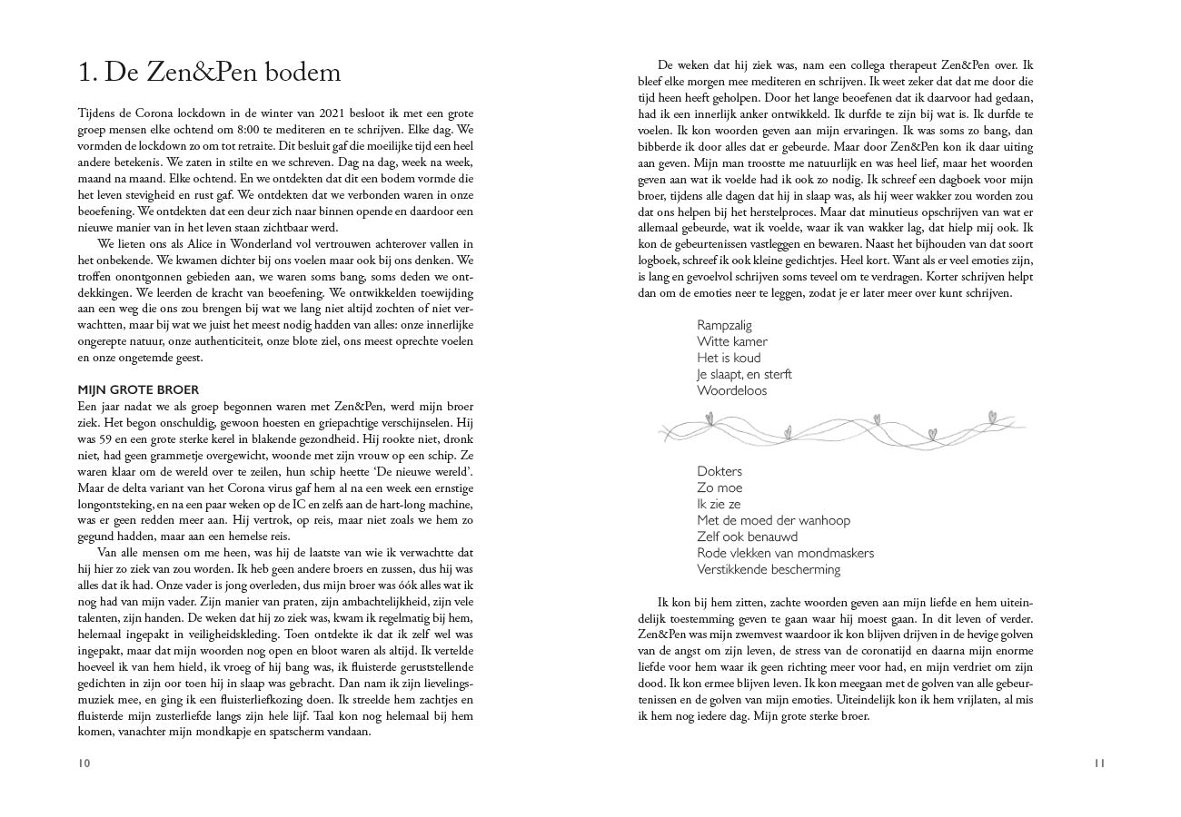 "Ik geniet van Zen en Pen. Het is verrassend wat er in me opkomt als ik ga schrijven. Ik heb Zen en Pen net cadeau gedaan aan mijn kleindochter (16j). Ben benieuwd hoe zij dat ervaart. Een aanrader dus."